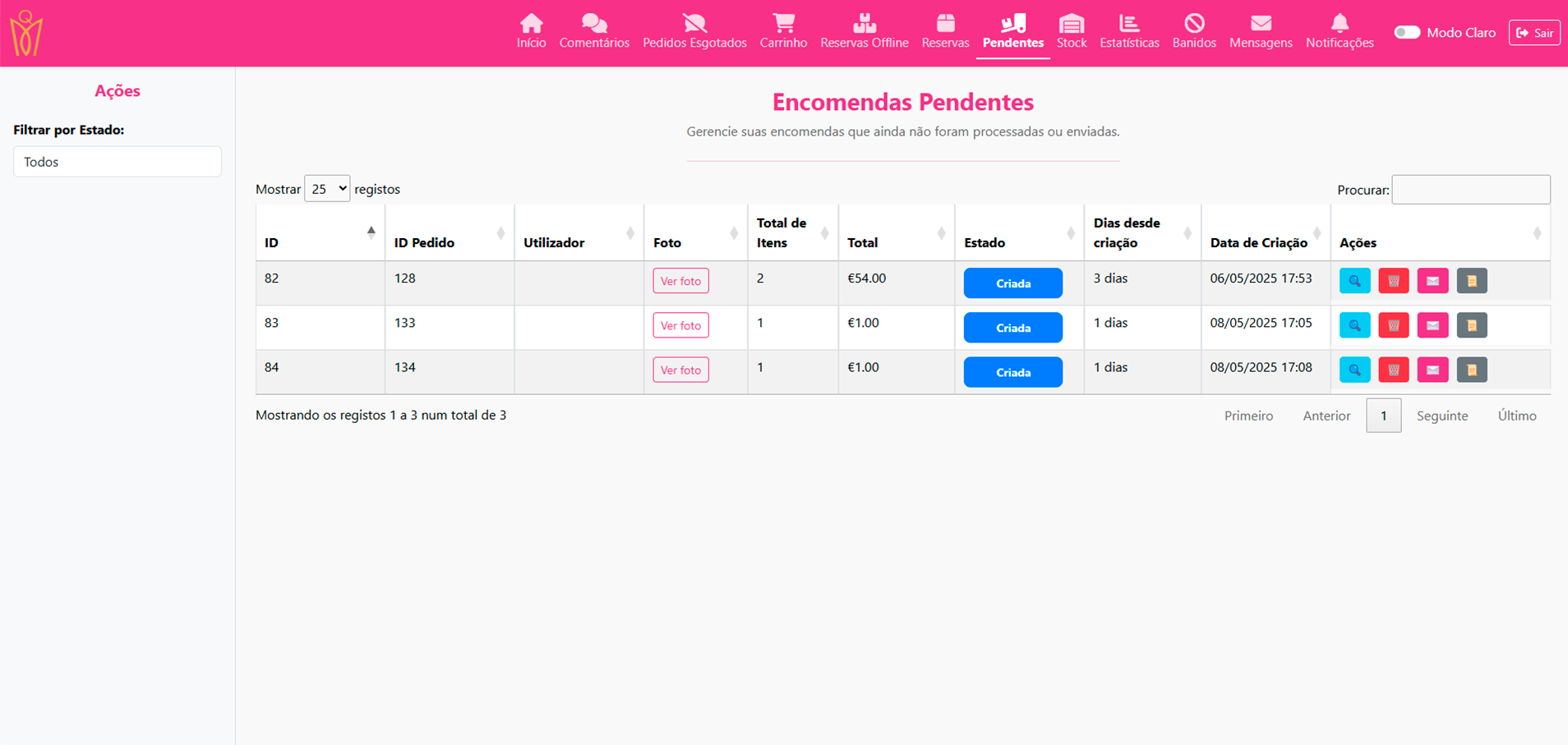 Esta aplicação foi desenvolvida à medida para responder às necessidades da loja, oferecendo uma solução prática para a gestão de inventário, organização de encomendas e acompanhamento eficiente das vendas.