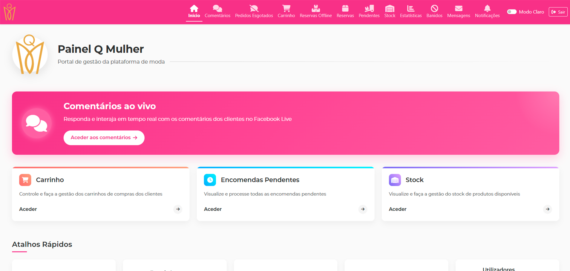 Criamos a aplicação web da Q Mulher com a intenção de simplificar a gestão do inventário, otimizar a organização dos pedidos e melhorar o acompanhamento das vendas, tornando-os mais eficazes e precisos.